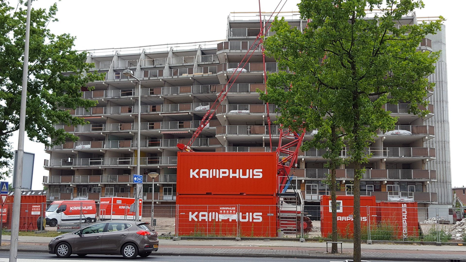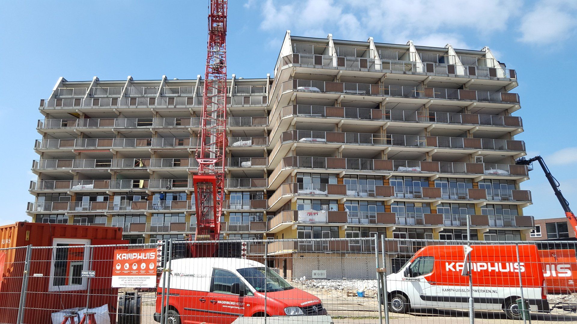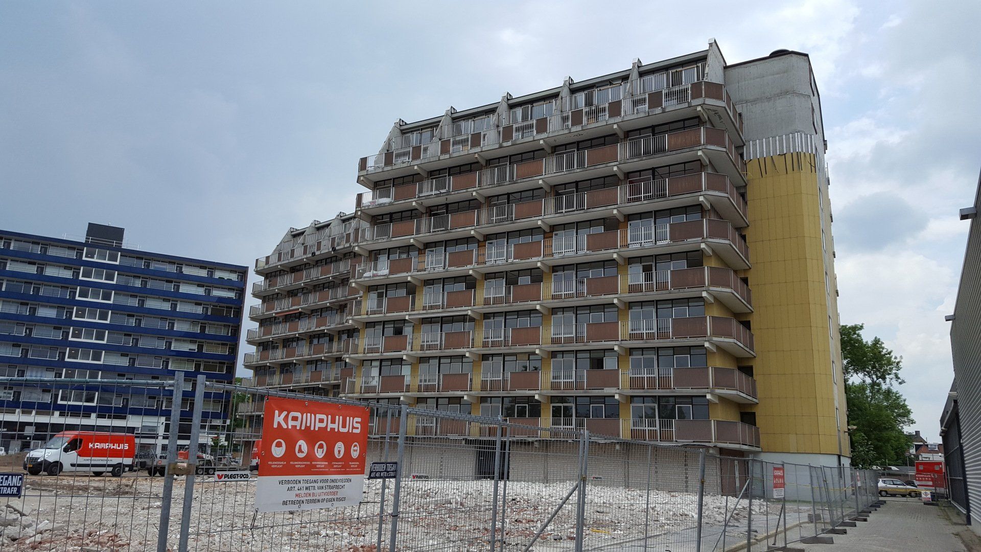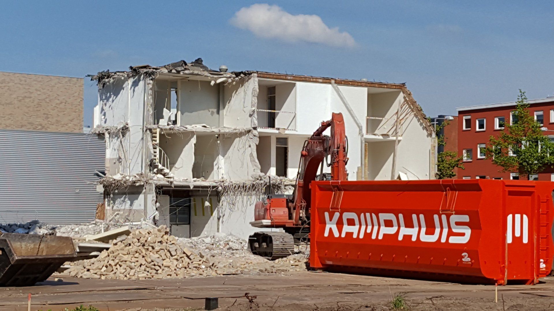 Uiteindelijk sloop van een nog niet al te oud appartementengebouw.